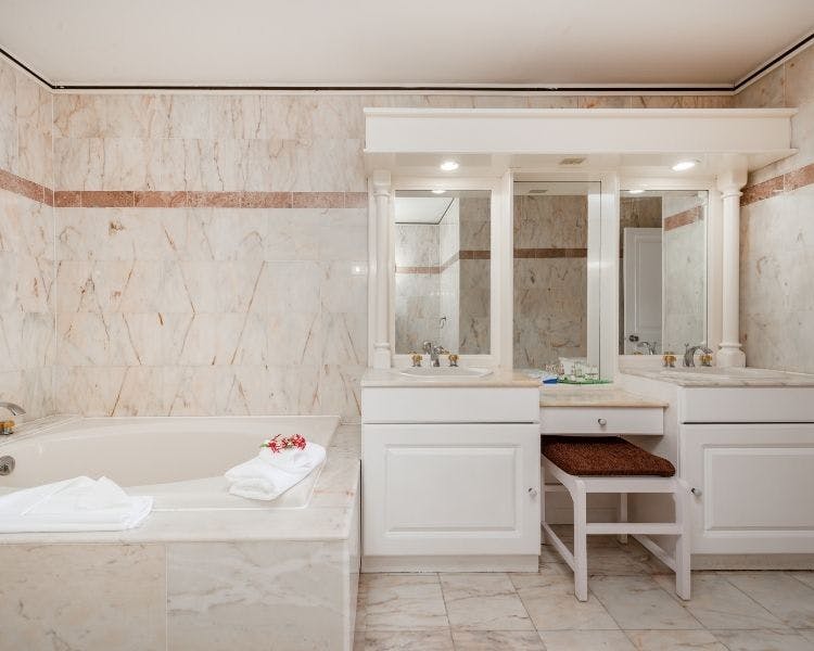 Feel pampered in this 190m² / 2045 sq ft two-level apartment having a two bedroom ocean front rooms with one king bed, two single beds, a sofa bed and three bathrooms featuring Italian marble and tile flooring, a bathtub in the master bedroom, a living area along with a private swimming pool in the terrace with beautiful views of the Caribbean Sea.