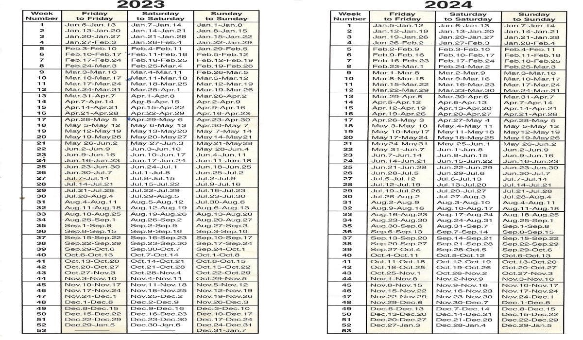 Click this page to verify on the year and see the calendar weeks , Saturday to Saturday and Sunday to Sunday check-in dates.
